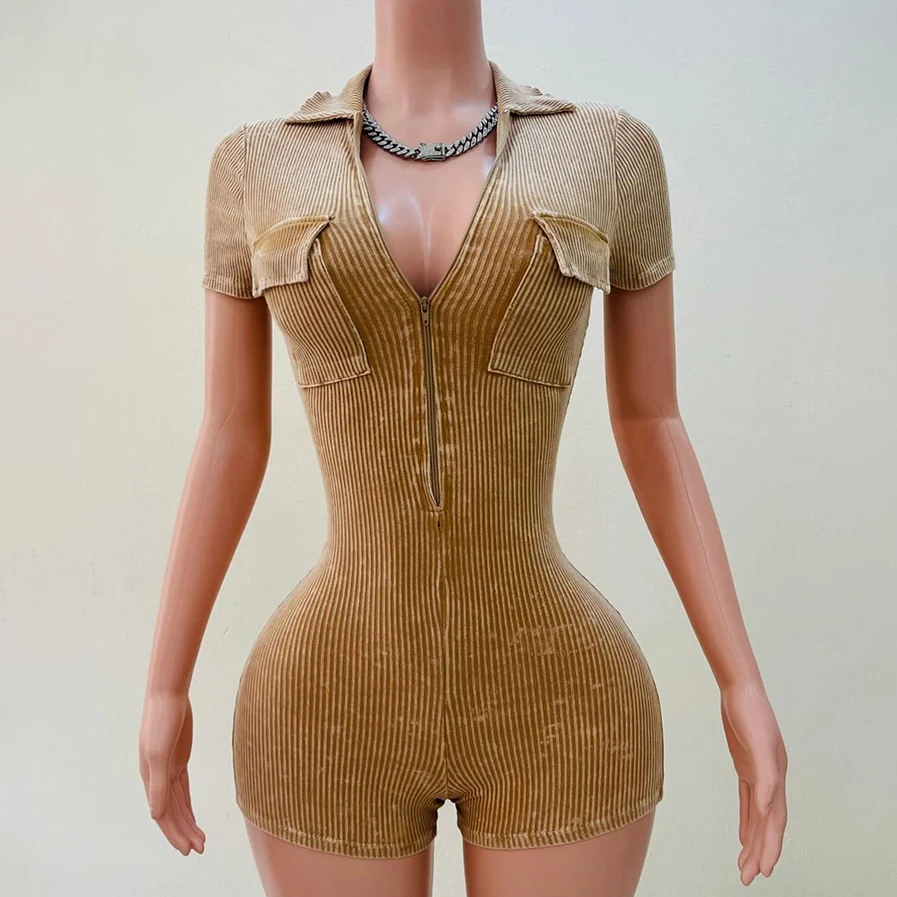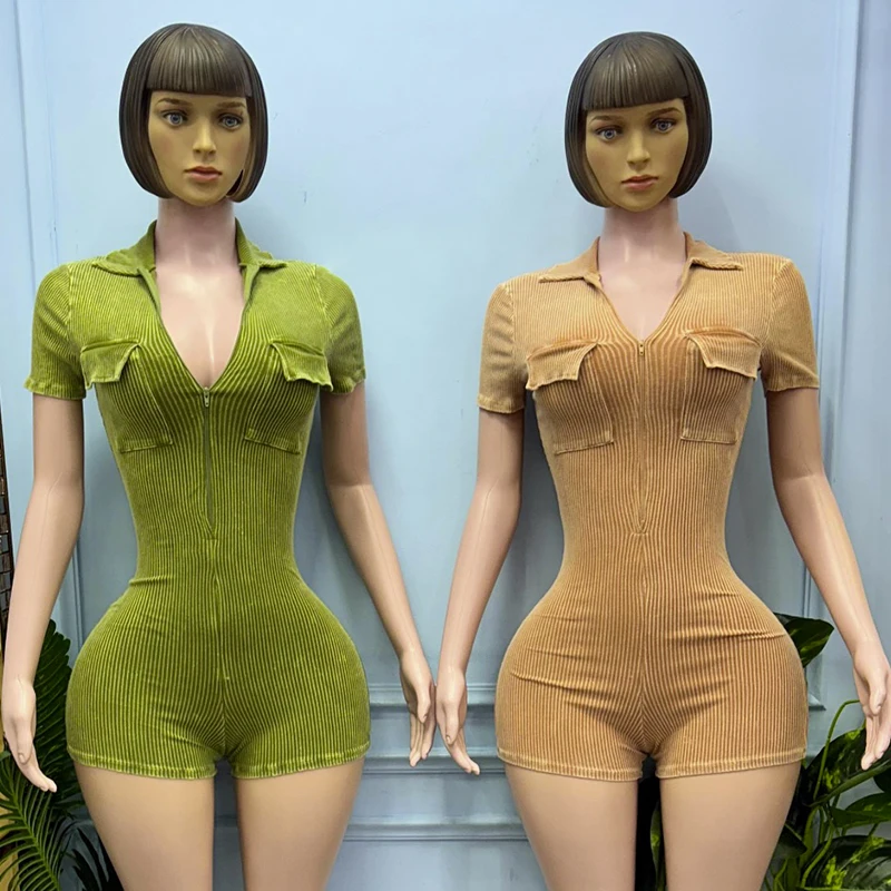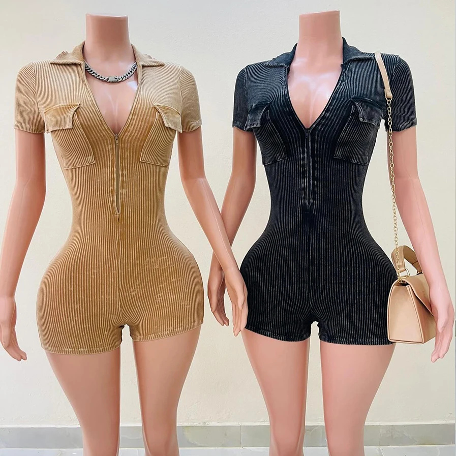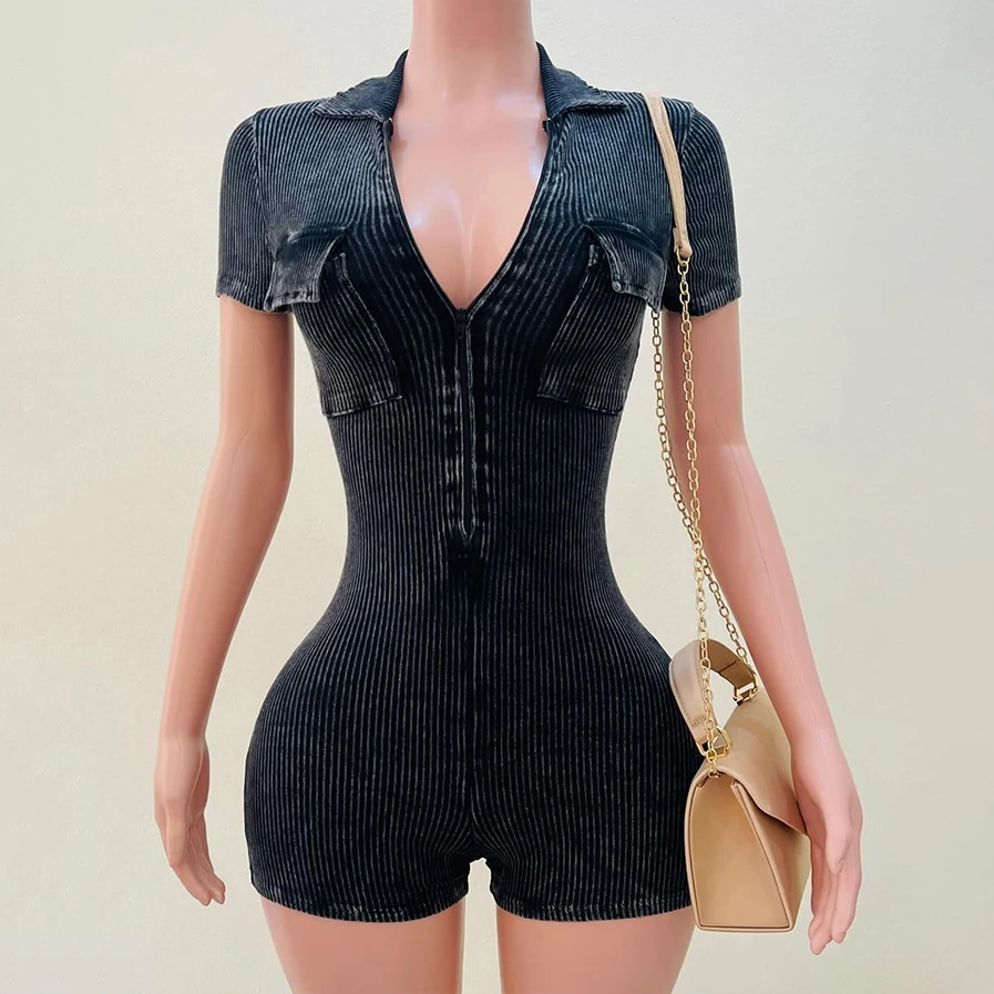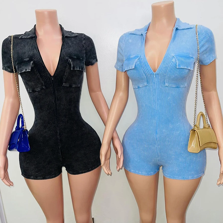 Huili Activewear Manufacturer High Quality Gym Fitness Bodycon Custom Acid Wash Sports Shorts Bodysuits&jumpsuits with Zipper